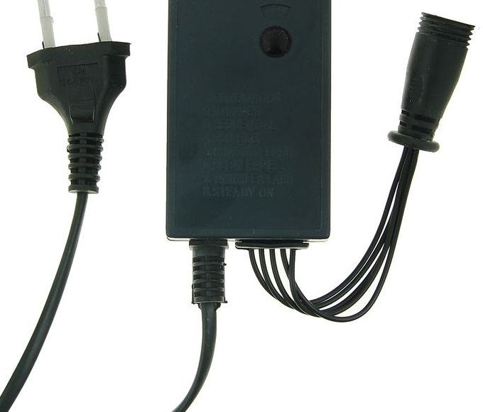 Контроллер – это еще одно необходимое приобретение, если ваш выбор пал на гирлянды с возможностью объединения. Это маленькое устройство является одновременно блоком питания и пультом управления. К такому контроллеру вы можете подключить цепь до 4000 LED cо светодинамикой, а затем выбрать один из 8 режимов работы – свечение, сияние, затухание, волны или микс всех программ сразу.